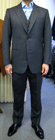 今回はテーラーラトが得意としている見た目はスッキリとした印象に見え着心地は比較的ユトリを持たせ楽に着て頂けるスーツをお作りさせて頂きました。